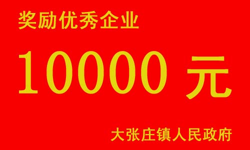 2010年2月5日,中共天津市北辰区大张庄镇委员会、天津市北辰区大张庄镇人民政府隆重召开了“2009年度经济工作中做出重要贡献企业”的表彰大会,因我公司09年度纳税100万元以上,被授予“优秀企业奖”荣誉称号,并获得10000元奖励。